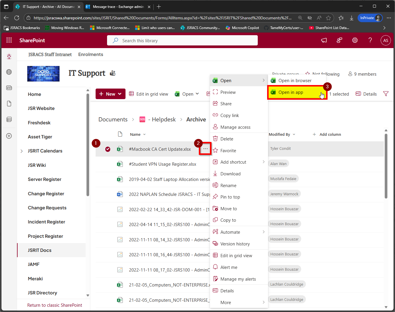 - Hover the cursor over "Open" and click "Open in app"